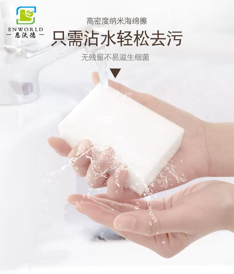 納米海綿又被稱為密胺海綿、魔力擦等,是采用新型納米技術(shù)研發(fā)的特殊開(kāi)孔結(jié)構(gòu)泡體的密胺泡棉,每個(gè)小顆粒比頭發(fā)絲的 萬(wàn)分之一還小,無(wú)味、無(wú)害,用于清潔去污,其顯著的特征就是只需清水,無(wú)需洗滌劑,即可強(qiáng)力去污。